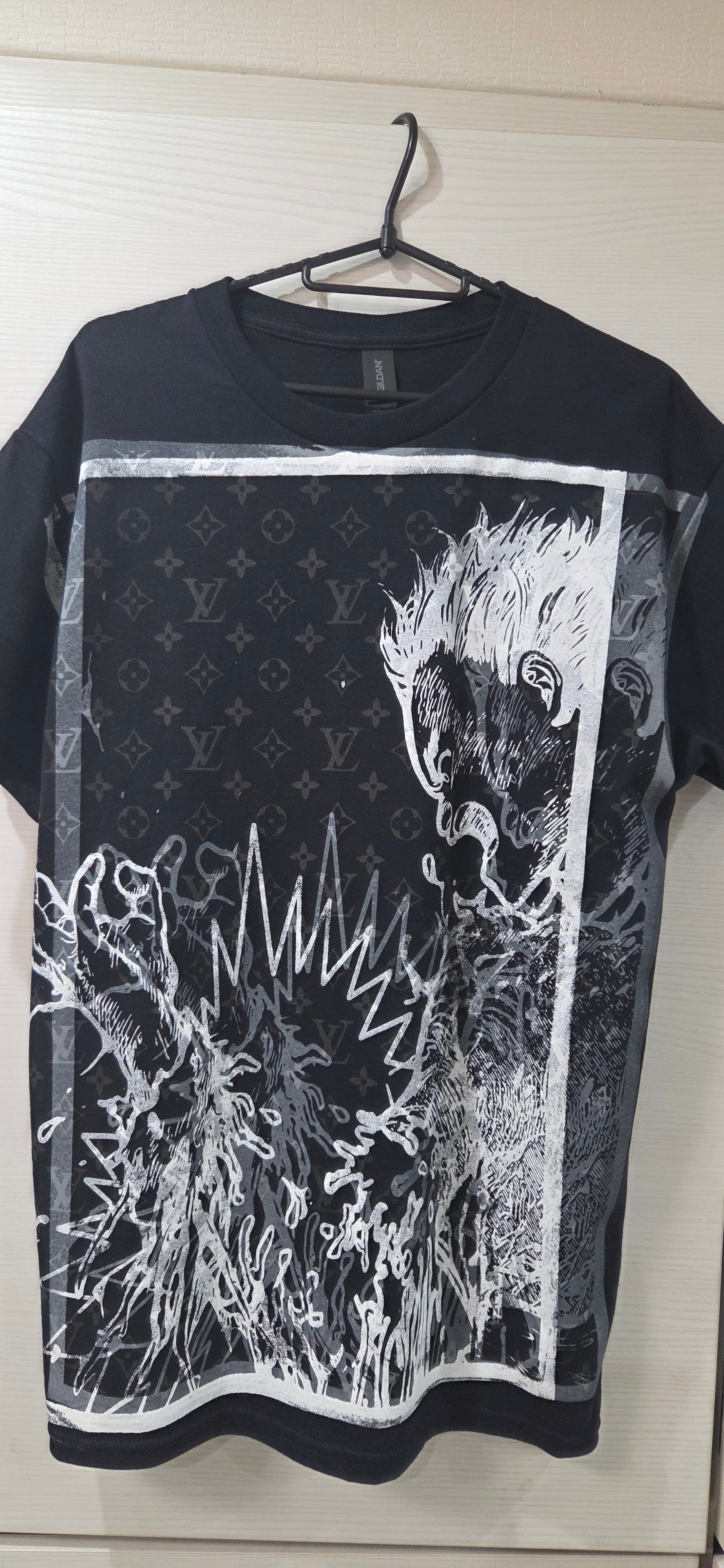 上からマッシブ版のインクはグレーインクを調合して、さらに、白インクでずらして非規制品の荒さをだしました。